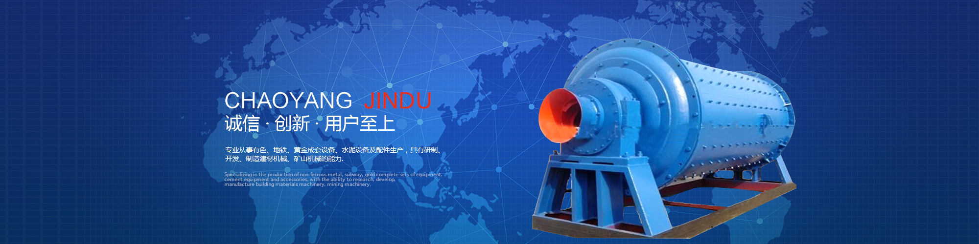 朝陽金都重型設(shè)備制造有限公司,位于遼寧西部,緊鄰101國道,專業(yè)從事有色、地鐵、黃金成套設(shè)備、水泥設(shè)備及配件生產(chǎn),具有研制、開發(fā)、制造建材機械、礦山機械的能力。
